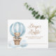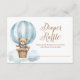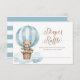 Cartão de Chá de fraldas Raffle Fralda de Urso Azul Teddy apresenta uma ilustração aquática adorável de um ursinho de peluche em um balão de ar quente contra nuvens macios.