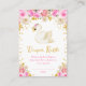 Esta gaivota de fralda giro e caprichosa apresenta um elegante cisne e rosas cor-de-rosa arranjos florais com falso confete de brilho dourado. O texto combina o script manuscrito e as fontes sans serif para uma aparência na moda e moderna. Isto é perfeito para um chá de fraldas temático cisne. Gráficos por Heideramalice e SunflowerDayLove