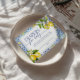 Inspirada pelo encanto da costa de Amalfi, este cartão de rifa de fralda apresenta limões de aquarela, padrões de azulejo mediterrâneos e uma tipografia azul elegante. Um detalhe novo e vibrante para complementar o seu chá de fraldas cítrico italiano.