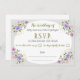 Uma moldura circular feita de raminhos de flores numa cor pastel cria um design elegante para este cartão de resposta. Responder a um convite de casamento.