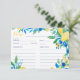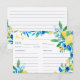 chá de noiva elegante e casual com tipografia de caligrafia moderna e limões estilo italiano, folhagens e cartão de receita de cozimento com coroa de aquarela floral azul