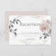 Convite de Recepção de Casamento | Rosas cor de rosa poeira pintadas à mão em aquarela ao redor de uma moldura geométrica prateada OU dourada com folhagem verde-sage em estilo boêmio. Na maioria dos convites, o verso é uma cor de rosa poeira complementar. Personalize o texto, o estilo da fonte, a cor e o tamanho. Arte original criada para a BarefootBride™ por © WhimsicalArtwork™ - Esta é parte de uma Suite de Papelaria de Casamento completa com papelaria de casamento, chá de bebê e outros eventos.