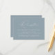 Cartões simples e elegantes de cerimônias de cerimônia de núpcias, com "Recepção" em um roteiro branco de caligrafia moderna, com um fundo azul poeirento (ou cor da sua escolha). Personalize as recepções de casamento minimalistas adicionando seus detalhes de recepção em letras brancas. Projetado para coordenar com a nossa coleção de casamento do Modern Elegance.