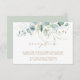 Este cartão de recinto de recepção de casamento apresenta eucalipto pintado a aquarela, folhas verdes botânicas e brilho dourado com escrita dourada.