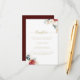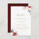 Este clássico cartão de recepção de casamento branco burgundy de ouro é perfeito para um casamento rústico. A design apresenta a cor-de-água, flores brancas, borrifadas e douradas e bagas com folhagem verde dispostas em buquês elegantes.