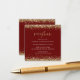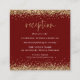 Recepção de Casamento Burgundy com Brilho Dourado Elegante. Um tamanho mini de 2,5" quadrado para incluir com seus convites. Um script moderno para o cabeçalho e o resto do texto que você pode facilmente personalizar, com bordas de brilho falso no topo e na parte inferior em ambos os lados em dourado.