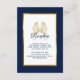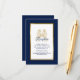 Forneça aos seus convidados todos os detalhes da recepção do seu casamento com este cartão de enclave elegante com letra moderna, texto azul-marinho incluindo cavalos-marinhos artísticos a beijar-se e moldura metálica dourada na frente do cartão. Um fundo azul-marinho está na frente e no verso.