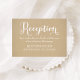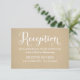 Um cartão de recinto de recepção coordenado com letra caligráfica branca "Recepção" com detalhes do local e horário em um fundo de papel kraft quente. O design mantém a estética country romântica da suite em um formato compacto para informações de jantar, bebidas e dança. Todo o texto é totalmente editável.