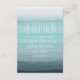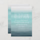 Um cartão de recepção de casamento na praia com um design ombre inspirado em aquarela azul na frente e atrás.