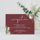 Este cartão de detalhes do casamento com folhas de folhagem botânica elegante pode ser personalizado com suas informações em tipografia sofisticada em um fundo rosa rosewood. Projetado por Thisisnotme©