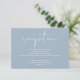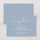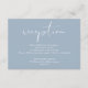 Este cartão de detalhes do casamento com letra moderna e elegante pode ser personalizado com as suas informações em tipografia chic em um fundo azul desbotado. Concebido por Thisisnotme©