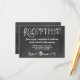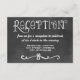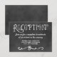 Convide os convidados para a sua celebração com este cartão de recepção de quadro negro com letras desenhadas à mão e um floreio decorativo elegante. O fundo texturizado escuro com tipografia branca e detalhes em script cria uma sensação calorosa e casual. Personalize a hora, o nome do local e o endereço para coordenar perfeitamente com a sua suíte de casamento de quadro negro.
