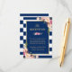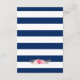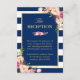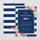 Cartão de Recepção de Casamento com Listras Azuis Marinho e Florais Elegantes.