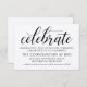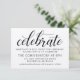 O cartão de casamento em papel kraft rústico chic "Celebre" apresenta um design tipográfico preto elegante com acentos de roteiro de caligrafia ousada e texto personalizado que pode ser personalizado com as informações da recepção do seu casamento.