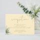 Este cartão de detalhes de casamento com folhas de verde botânico elegante pode ser personalizado com suas informações em tipografia dourada sofisticada em um fundo amarelo botão-de-ouro. Criado por Thisisnotme©