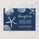 Cartões de Recepção de Casamento Tema Praia Azul Marinho com Conchas.