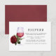Cartão de recinto de recepção de casamento com degustação de vinho temático de rosa vintage antigo em sotaques de borgonha - vinho tinto, branco marfim e dourado cobre.