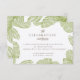 Este convite de recepção de casamento com tema de praia apresenta ilustrações de palmeiras vintage e tipografia elegante.