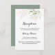 Este cartão de recepção de casamento de folhagem verde-ouro é perfeito para um casamento rústico. Este design artístico apresenta a aquarela desenhada à mão, ouro e folhagem verde, inspirando beleza natural.