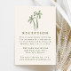 Adicione um toque de elegância natural à sua suíte de casamento com este cartão de receptáculo, mostrando palmeiras verdes desenhadas à mão no topo de um fundo de creme macio. Ideal para casamentos de jardim, tropicais ou de destino, esta design de na moda oferece espaço para detalhes de recepção, como o local e o horário, garantindo que os convidados tenham todas as informações necessárias. Um belo e atencioso complemento ao seu convite.