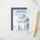Uma misteriosa floresta de cinzas, acentuada com um romântico nevoeiro branco ao redor dos pinheiros e da montanha ao fundo, faz uma recepção de casamento de natureza selvagem excelente para uma cerimônia de inverno nas montanhas. A elegante tipografia mostra todos os bonés com uma bela assinatura florescendo nas letras maiúsculas. Adicione detalhes de acomodação ou outras informações de convidado neste cartão de compartimento.