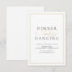 O romeno do cartão de recepção de janto e dança apresenta o roteiro de na moda e detalhes elegantes do evento de fontes em ouro e preto, moderno e simples, excelente de casamento formal minimalista, casamento clássico tradicional, casamento simples moderno. Veja todas as peças correspondentes na coleção.