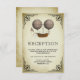 Cartão legal de cerimônia de entrega do tema steampunk com um belo balão de ar quente inspirado em steampunk contra um fundo de pergaminho vintage.