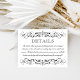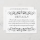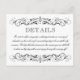 Detalhes personalizados Cartão em cores preto e branco com elegante vintage floresce detalhes. Inclui informações para uma recepção de casamento somente para adultos na frente com informações adicionais para acomodações de hotel, registro e site de casamento no verso. Redação e cores do cartão e ser completamente personalizado.