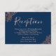 Cartão De Informações Recepção de Casamento em Rose Gold e Azul Naval