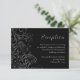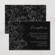 Cartão De Informações Recepção de Casamento Floral Elegante Prata e Pret
