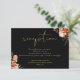 Este cartão de detalhes de casamento floral rústico elegante pode ser personalizado com suas informações em tipografia dourada sofisticada em um fundo preto. Projetado por Thisisnotme©