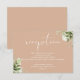 Este cartão de detalhes de casamento de folhas de verde botânico elegante pode ser personalizado com suas informações em tipografia chic em um fundo bege. Projetado por Thisisnotme©