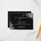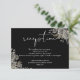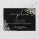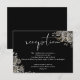 Este cartão de detalhes da recepção de casamento com rosas florais góticas elegantes pode ser personalizado com suas informações em tipografia branca chic em um fundo preto. Projetado por Thisisnotme©