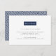 Elegantes, sofisticados e modernos, estes cartões de inserção para recepção de casamento ultra-modernos apresentam "Recepção" definido em um elemento retangular que pode ser personalizado com o clique de um botão para combinar com as cores do seu casamento. Adicione os detalhes da recepção, como horário, local e endereço, e ajuste a cor de acordo com a sua preferência usando as instruções fáceis abaixo. O verso dos cartões apresenta um padrão opcional de chave grega moderna. Mostrado em azul-marinho clássico e branco.
