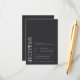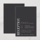 Um pequeno cartão de inclusão de convite de casamento para os detalhes da recepção, com "Recepção" ao longo do lado esquerdo em letras brancas clássicas e os detalhes da sua recepção alinhados na parte inferior esquerda. Projetado para combinar com nossa coleção de casamento Paralelo. Nossa paleta de cores Cinza faz uma declaração clássica com letras brancas nítidas em um fundo preto suave.