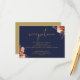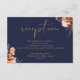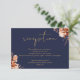 Este cartão de detalhes de casamento rústico e floral elegante pode ser personalizado com suas informações em tipografia dourada sofisticada em um fundo azul marinho. Projetado por Thisisnotme