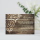 Este cartão de detalhes e/ou direções e acomodações da recepção de casamento rústico apresenta um fundo com aparência de madeira de celeiro desgastada com um desenho damask branco desbotado queimado na madeira. A combinação perfeita de materiais rústicos com a elegância dos detalhes damask. Perfeito para o seu casamento em celeiro, casamento ao ar livre, casamento country, casamento rústico, casamento vintage ou casamento elegante.