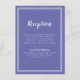 Uma placa simples, minimalista e elegante de Recepção de Recepção de Casamento apresenta um design contemporâneo com uma dupla borda de quadros em branco nítido sobre um fundo azul-piscadinho. A formulação tradicional proporciona sofisticação eterno mas moderna. Personalize a design de casamento com seus detalhes em letras brancas e roteiro. A parte traseira da placa corresponde a azul estável.