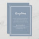 Um cartão de gabinete de informações de recepção de casamento simples, minimalista e elegante apresenta um design contemporâneo com uma dupla borda de quadros em branco nítido sobre um fundo azul tendencioso e empoeirado. A formulação tradicional proporciona sofisticação eterno mas moderna. Personalize a design de casamento com seus detalhes em letras brancas e roteiro. A parte traseira da placa combina em azul sólido empoeirado.