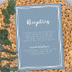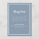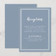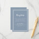 Recepção de Casamento Simples, minimalista e elegante Cartão de informações de encerramento apresenta um design contemporâneo com uma borda de quadro duplo em branco crocante em um fundo azul empoeirado da moda. A redação tradicional fornece sofisticação atemporal e moderna. Personalize o design de casamento com seus detalhes em letras brancas e caligrafia. O verso do cartão corresponde em azul empoeirado sólido.