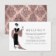 Cartões de recepção de casamento com vinho art déco vintage em folha falsa rosa dourado e rosa.