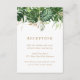 Recinto de recepção de casamento botânica moderno, com uma borda superior, constituída por verde tropical pintado com aquarelas e folhas de ouro falsas. Seus detalhes e fundos estão em um tom dourado correspondente. Estes cartões elegantes são uma forma excelente de fornecer informações aos seus convidados sobre a recepção, se ela for mantida em um local separado, e são perfeitos para um casamento de destino de verão em uma área tropical.