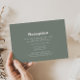 Este cartão de recepção de casamento verde formal minimalista é perfeito para um casamento russo. O design apresenta uma bela fonte em um fundo verde para embelezar seu evento.