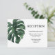 Melhore seu tema de casamento tropical com este elegante cartão de receptáculo, adornada com ilustrações vibrantes de folha verde palma. Perfeito para compartilhar detalhes adicionais sobre a celebração da sua cerimônia de posto, esta carta combina design moderna com verde exuberante para uma aparência chique e natural. É um complemento ideal para o seu jogo de papelaria tropical ou ao ar livre.