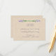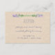 Estes lindos cartões de informação de recepção de casamento apresentam flores de lavanda em estilo aquarela ao longo da parte superior e um fundo de papel kraft marrom suave. Usamos arte de LABFcreations.