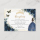 Cartão De Informações Recepção de Quinceañera Dourada Floral marinho Azu