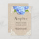 Cartões de Recepção de Casamento de Renda e Lona Azul de Hortênsia Rústica.