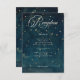 Entre em um reino celestial sonhador com nosso encantador cartão de recepção de casamento com tema vintage. Inspirado nos mistérios do cosmos, nosso design apresenta um fundo azul meia-noite adornado com estrelas douradas delicadas, criando um horizonte celestial hipnotizante. Uma graciosa lua crescente marfim ilumina o céu, adicionando um toque de elegância atemporal. Com fontes clássicas que lembram épocas passadas, esses cartões evocam uma sensação de nostalgia e romance. Vire para revelar um gráfico vintage cativante de um homem sereno na lua crescente, completando o charme celestial. Ilumine sua história de amor com charme celestial e convide seus convidados a embarcar em uma jornada celestial com você. Criado por Simply Farmhouse Press.