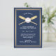 Completar convites azuis e dourados de marinho com cartões elegantes de recepção de temas de baseball / cartões de receptáculo de detalhes de festa. Todo texto é simples de personalizar ou excluir, fazer-o adequado para qualquer tipo de evento com uma recepção após um serviço ou cerimônia. Esta modelo de cartão também inclui espaço no verso para detalhes adicionais de celebração de sua escolha, como instruções, site, solicitações especiais, revp, diretrizes de mascaramento e distanciamento social, medidas de segurança contra pandemias de cobertura, etc. Design apresenta uma marinho azul, branca e borda falsa dourada, faixas modernas e deco de arte clássico inspirado na tipografia. Observe que o ouro é impresso a cor, não a folha metálica.
