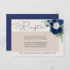 Cartões de recepção com rosas azuis escuras e marfim, folhagens, folhas de eucalipto e respingos de ouro. O modelo está configurado para você adicionar suas informações e também pode ser personalizado com o evento e data. Por favor, explore minha coleção Royal Rose para convites, papelaria, presentes e decoração do dia do evento coordenados.